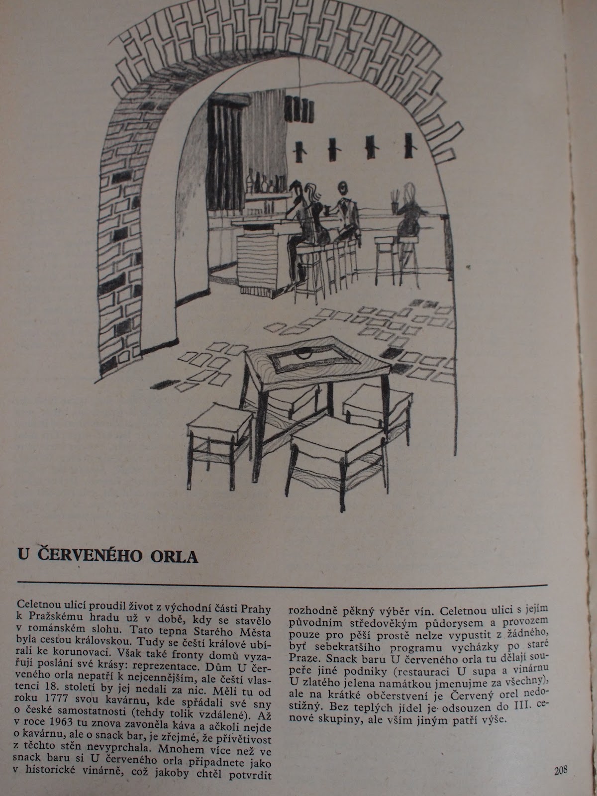 Je to vlastně takový předchůdce SCUKu v knižní podobě, protože obsahuje jen doporučení dobrých podniků, podpořené velmi pozitivní a velmi srandovní recenzí a opravdu pěknou ilustrací (v tom má oproti SCUKu náskok, ale já vím o někom, kdo by nám mohl obrázky doplnit :). Podniky jsou řazeny v abecedním pořadí a já se publikací postupně pročítám a přitom se směju, až se za břicho popadám. A aby vám to nebylo líto, rozhodla jsem se s vámi podělit o pár citací. Když se vám budou líbit, nebojte se požádat o přídavek v komentářích. Můžeme z toho udělat seriál.